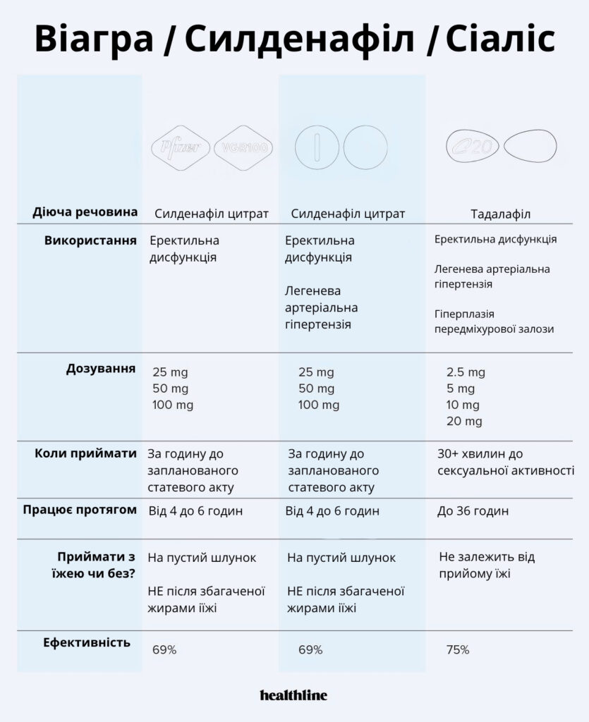 І Віагра, і Сіаліс — це препарати, які допомагають крові краще надходити до статевого члена під час сексуального збудження.